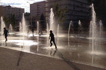 aux parvis sans bassins, murs et miroirs d'eau, les aires de jeux d'eau, les