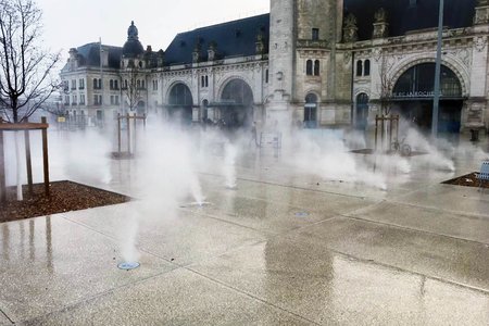 fontaines traditionnelles, les fontaines sèches avec des effets d'eau intégrés