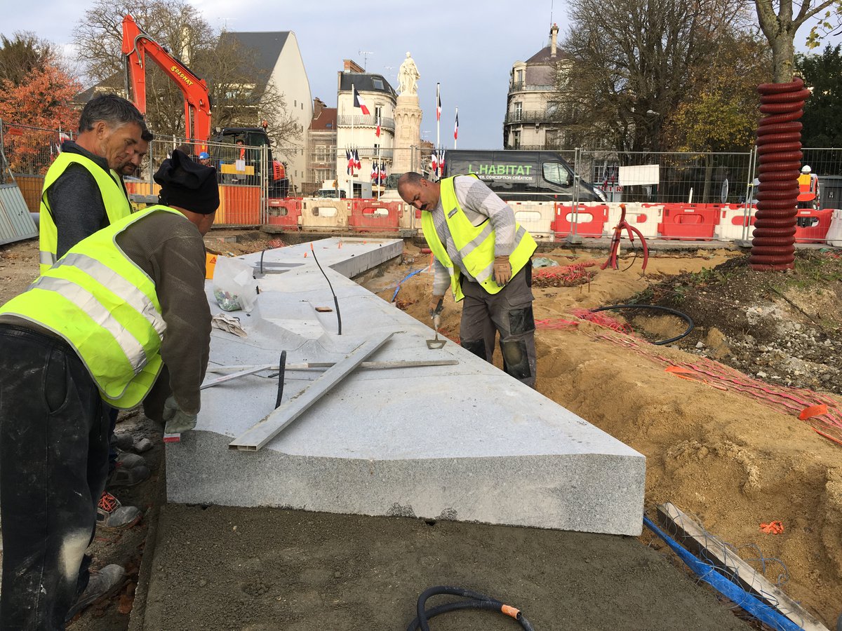La fontaine du parvis de la gare de Ville de Troyes vient embellir l'espace piéton par une combinaison de 3 ouvrages :